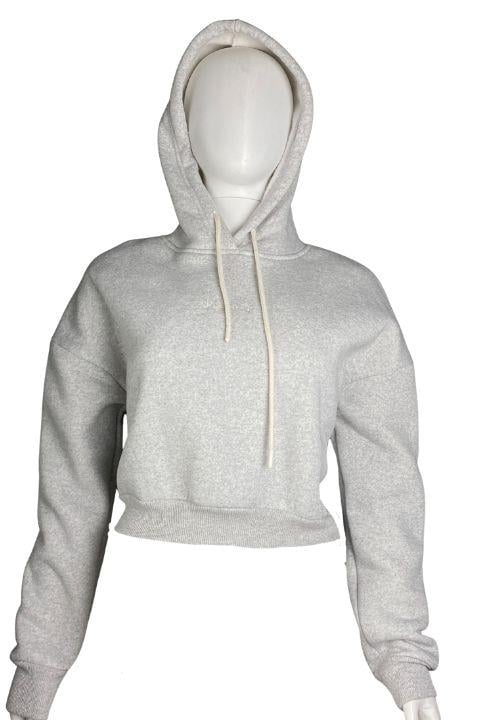 3 İPLİK KADIN KAPÜŞONLU CROP-GRİ
