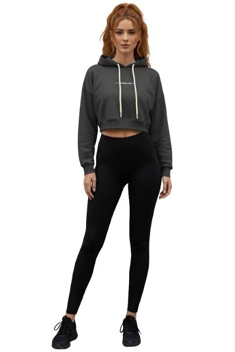 3 İPLİK KAPÜŞONLU KADIN CROP-ANTRASİT (0001852)