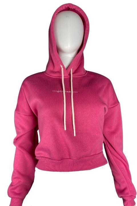 3 İPLİK KAPÜŞONLU KADIN CROP-TURUNCU (0001857)