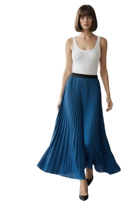 DERİ PİLELİ ETEK-MAVİ (0001559)