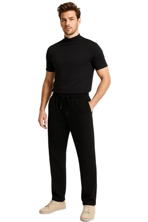 ERKEK ÇİZGİLİ PANTOLON EŞOFMAN-SİYAH