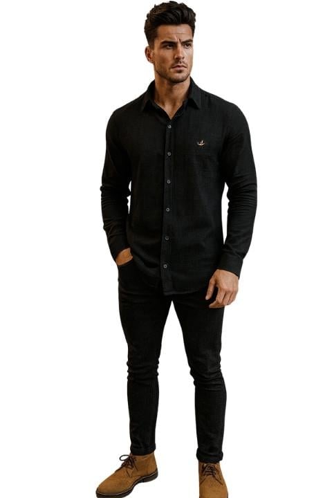 ERKEK KETEN GÖMLEK SİYAH KOD:1715096-53