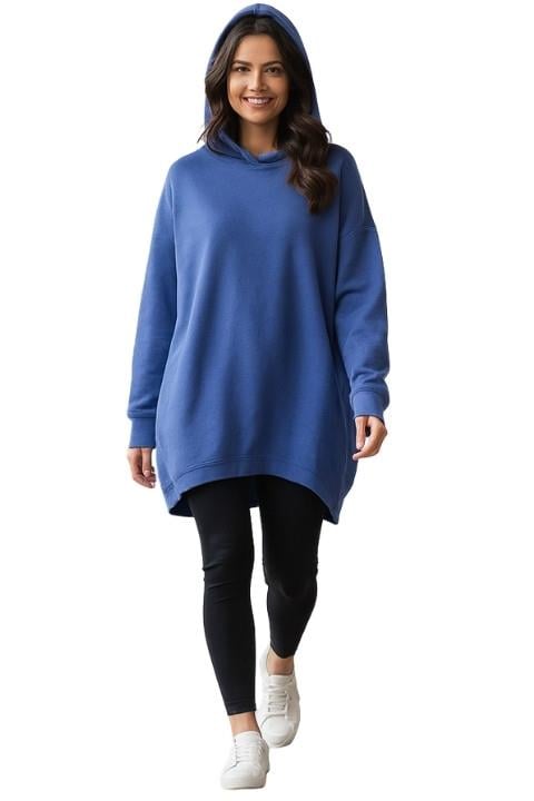 İKİ İPLİK KADIN YIRTMAÇLI KAPŞONLU-LACİVERT (0001474)