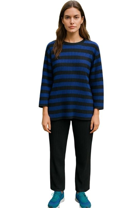 Kadın Fitilli Takım-Siyah Lacivert Çizgili (0002201)
