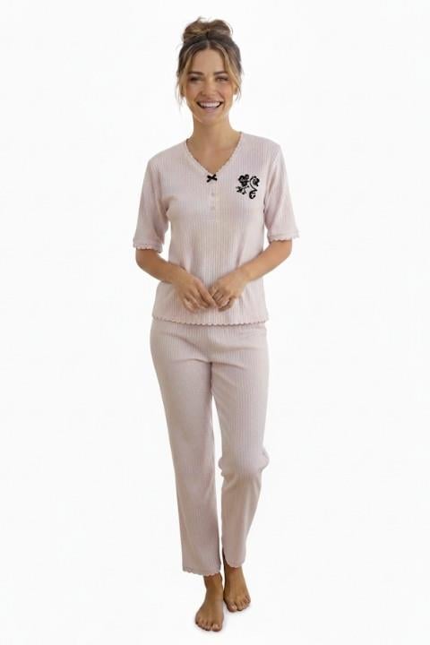 KISA KOL KADIN PİJAMA TAKIMI-PEMBE (0001666)