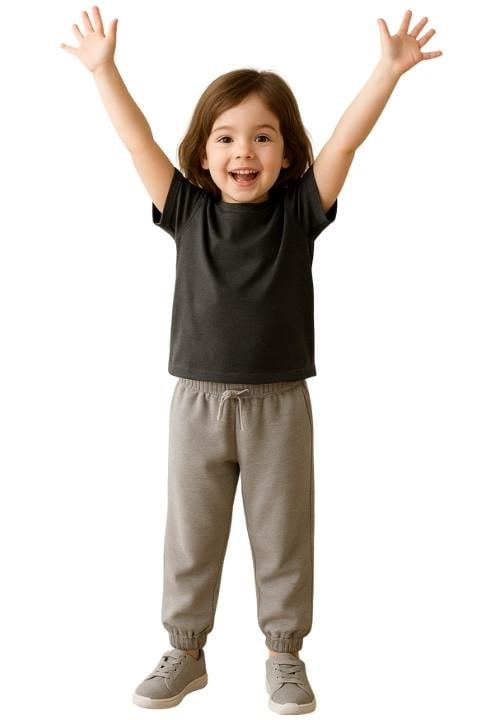 Kız Çocuk Eşofman Lastikli -Taş Gri