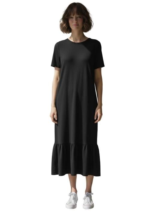 SIFIR YAKA KISA KOL PENYE ELBİSE-SİYAH (0001110)
