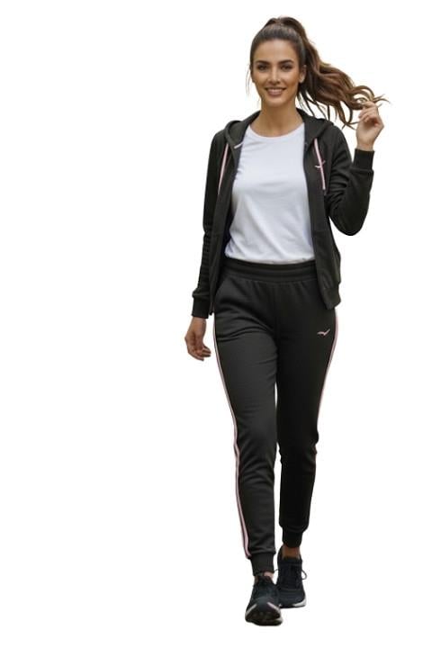 Trinta 2860 Bayan Kapşonlu Şeritli Eşofman Takım
