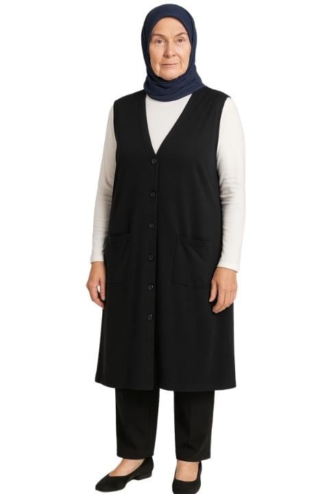 UZUN GLORYA YELEK ANNE MODEL-SİYAH (0001639)