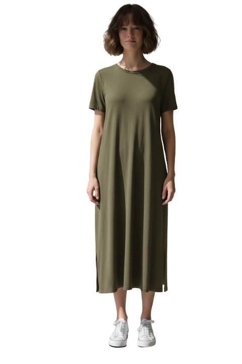 V YAKA KISA KOL PENYE ELBİSE-ASKER YEŞİLİ (0001114)